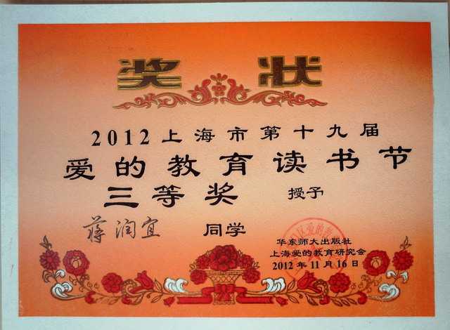 2012.11蒋润宜----获2012上海市第19届爱的教育读书节三等奖(奖状).jpg