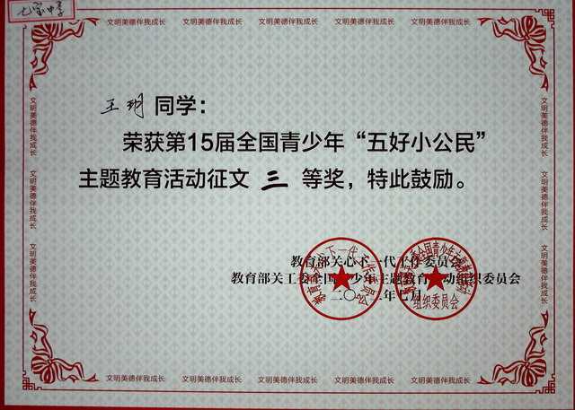 2012.07王玥----获第15届全国青少年五好小公民主题教育活动征文三等奖(证书).jpg