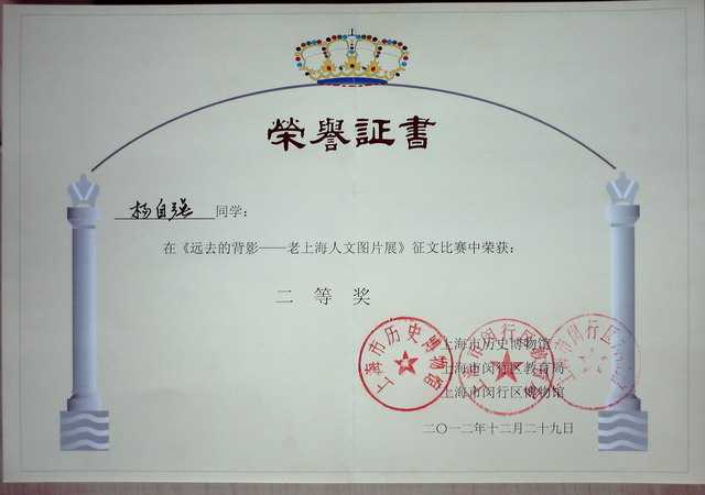 2012.12杨自强----获《远去的背影----老上海人文图片展》演讲比赛二等奖(证书).jpg