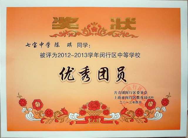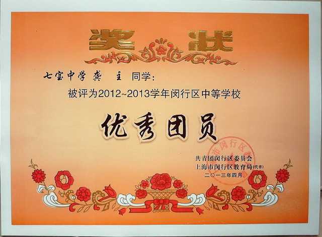 2013.04龚主----被评为2012-2013学年闵行区中等学校优秀团员(奖状).jpg