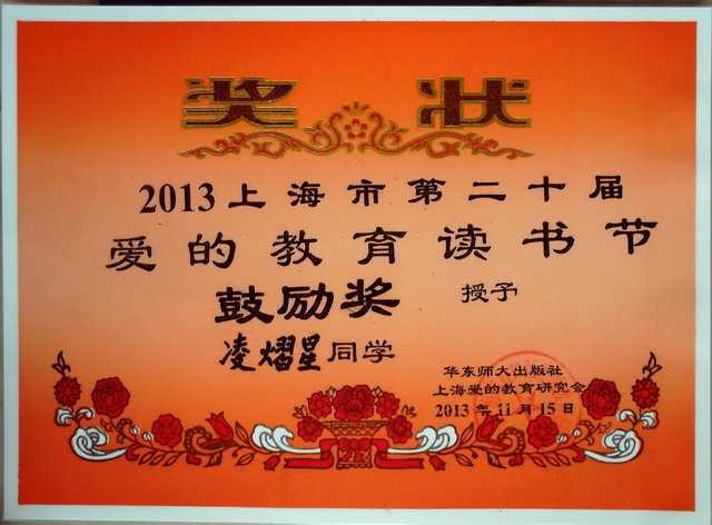 2013.11凌熠星----获2013上海市第20届爱的教育读书节鼓励奖(奖状).jpg