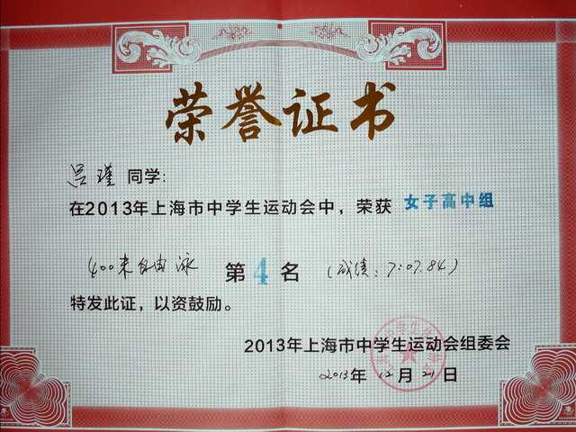 2013.12吕瑾----获2013年上海市中学生运动会女子高中组400米自由泳第四名(证书).jpg