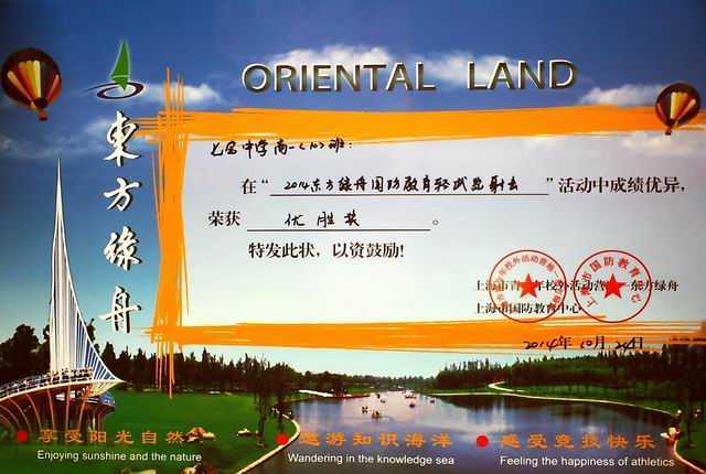 2014.10七宝中学高一11班----获2014东方绿舟国防教育定向越野优胜奖(奖状)