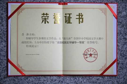 吕淮----获全国校园文学辅导一等奖荣誉称号(证书)