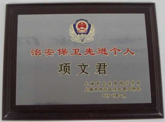 项文君----获闵行区治安保卫先进个人(奖牌)