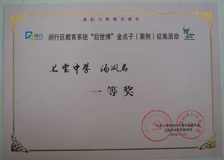 汤凤君----评为闵行区教育系统“后世博”金点子(案例)征集活动一等奖(证书).