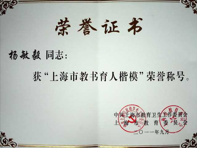 2011.09杨敏毅----获上海市教书育人楷模荣誉称号(证书).jpg