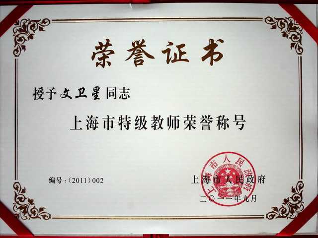 2011.09文卫星----被授予上海市特级教师荣誉称号(证书).jpg