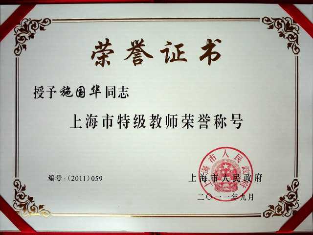 2011.09施国华----被授予上海市特级教师荣誉称号(证书).jpg
