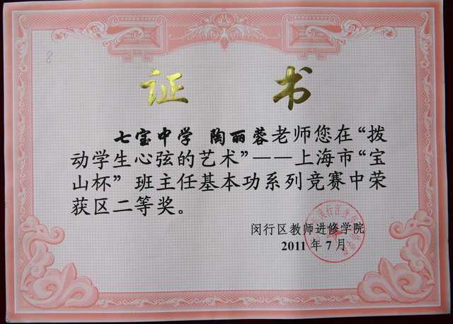 2011.07陶丽蓉----获“拨动学生心弦的艺术”上海市“宝山杯”班主任基本功系列竞赛区二等奖(证书).jpg