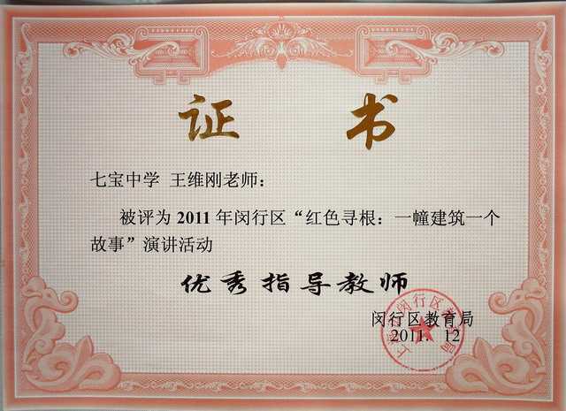 2011.12王维刚----评为2011年闵行区“红色寻根:一幢建筑一个故事”演讲活动优秀指导教师(证书).jpg