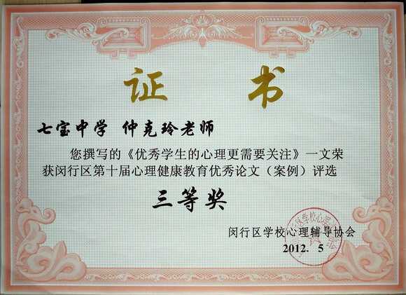 2012.05仲克玲----《优秀学生的心理更需要关注》获区第10届心理健康教育优秀论文(案例)三等奖(证书).jpg