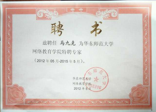 马九克----被聘为华东师范大学网络教育学院特聘专家(聘书)