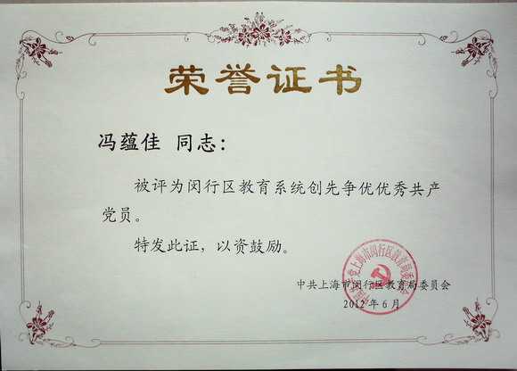 2012.06冯蕴佳----被评为闵行区教育系统创先争优优秀共产党员(证书).jpg