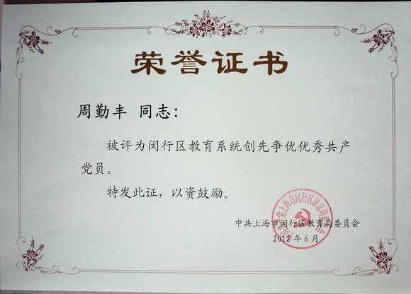 2012.06周勤丰----被评为闵行区教育系统创先争优优秀共产党员(证书).jpg