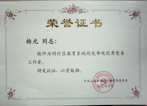 2012.06杨光----被评为闵行区教育系统创先争优优秀党务工作者(证书).jpg