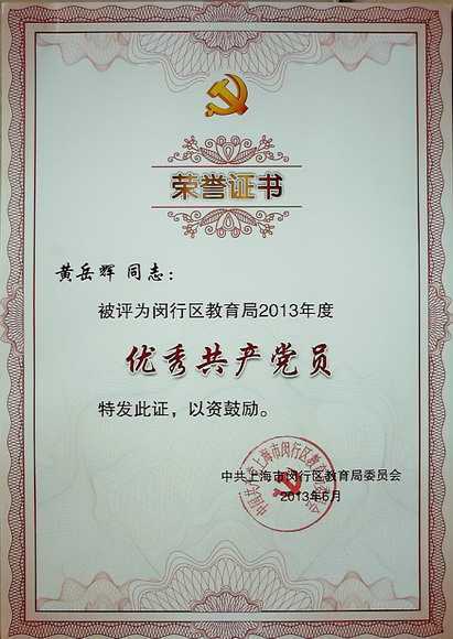 2013.06黄岳辉----评为闵行区教育局2013年度优秀共产党员(证书).jpg