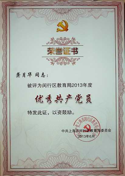 2013.06龚月华----评为闵行区教育局2013年度优秀共产党员(证书).jpg