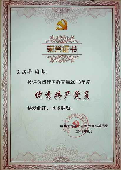 2013.06王忠平----评为闵行区教育局2013年度优秀共产党员(证书).jpg