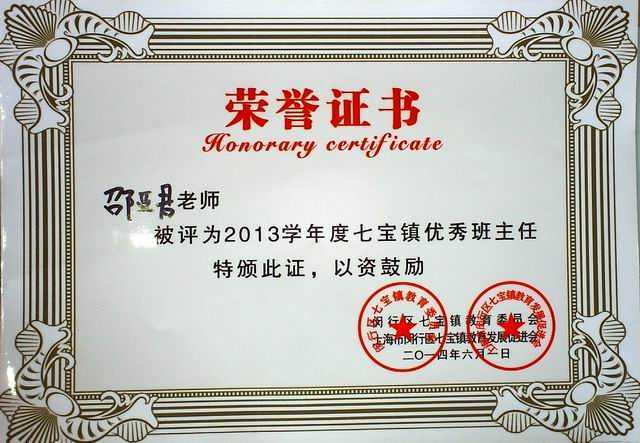 邵亚君----被评为2013学年度七宝镇优秀班主任