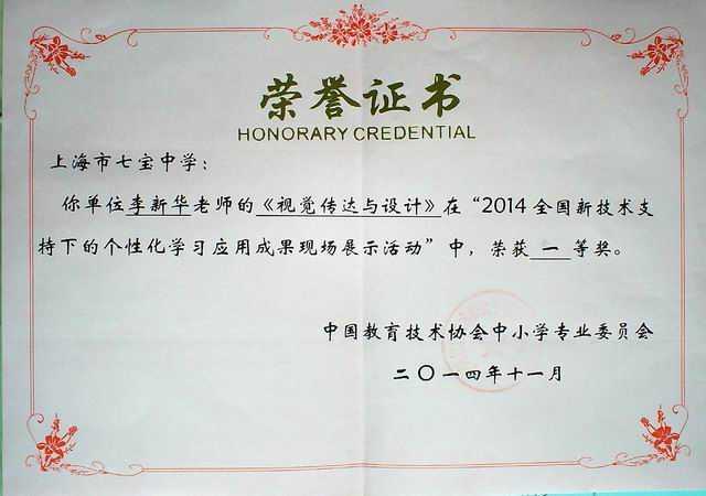 李新华----《视觉传达与设计》获2014全国新技术支持下的个性化学习应用成果展示活动一等奖
