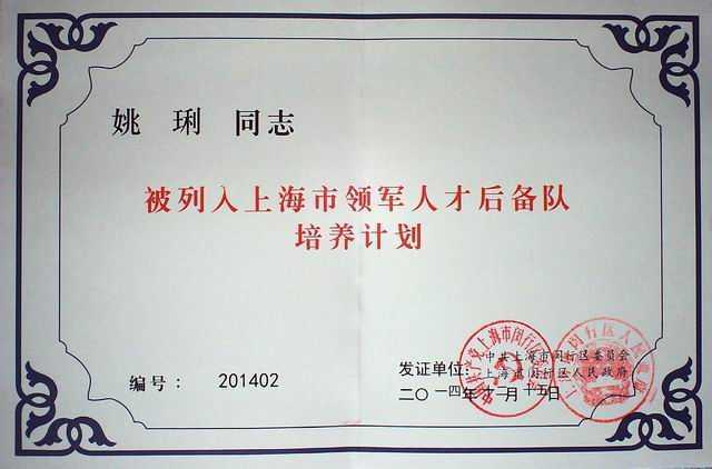 姚琍----老师被列入上海市领军人才后备队培养计划